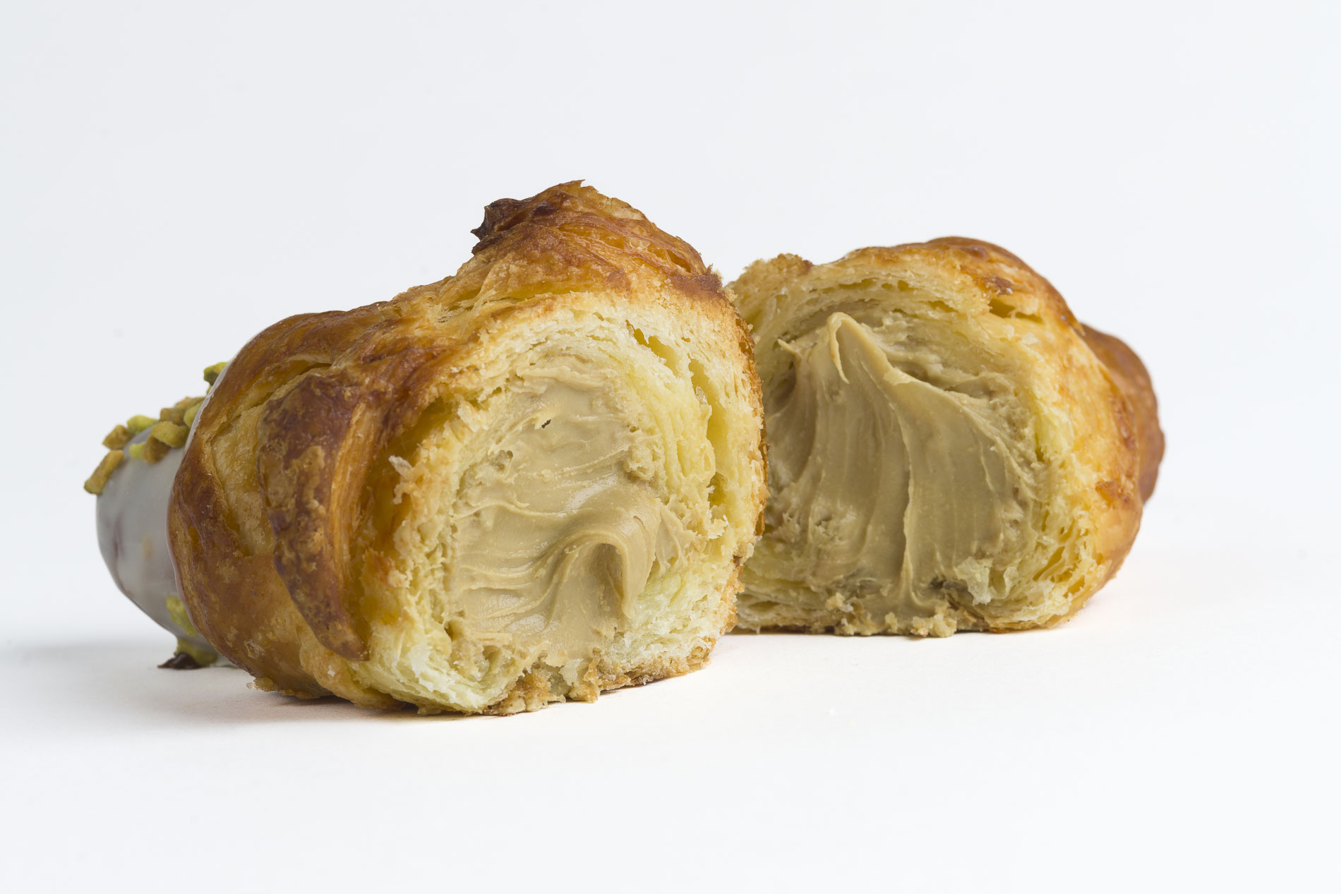 Ingredientes: almidón de maíz, almidón de tapioca, LECHE sin lactosa, dextrosa, HUEVO, agua, azúcar, margarina (SOJA), crema de pistacho, chocolate blanco (LECHE), goma xantana, azúcar, levadura, vitamina c (antioxidante), fosfato mono cálcico (correcto de acidez), sal, PISTACHO granillo.